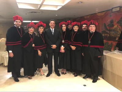 Exámenes de grados presididos por el Dr. Luis Ponce de León Armenta rector del IIDE acompañado por la Dra. Rossana Schiaffini Aponte y el Dr. Marco Antonio Godínez Enríquez Director del campus Barra.