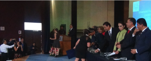 Entrega de reconocimientos de culminación de estudios de los alumnos del Doctorado en Administración Pública, presidida por el Dr. Luis Ponce de León Armenta acompañado por el Dr. Oscar Javier Rodríguez Aguirre, el Dr. José Ibarra Delgadillo, la Dra. Ma. Teresa Villegas Santillán y la Dra. Yanalte Rodríguez Soto.